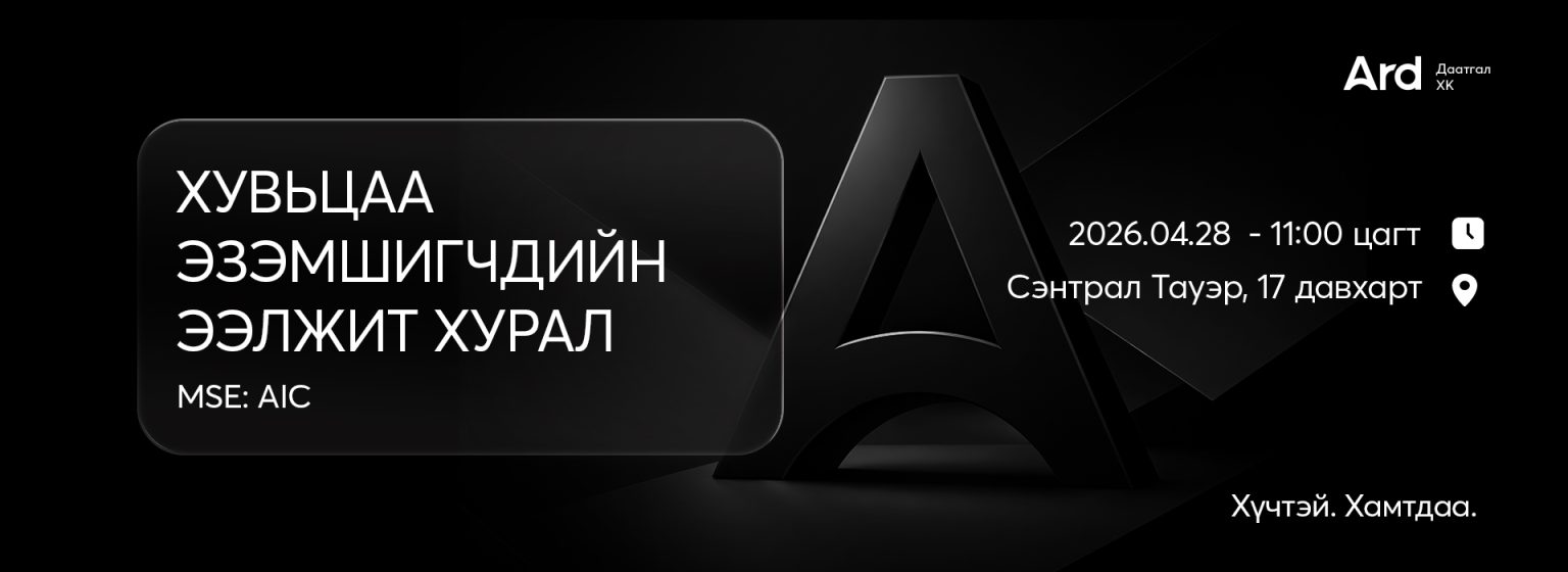 Хурал хуралдуулах газар, өдөр, цаг: 2026 оны 4 сарын 28-ны өдрийн 11 цаг 00 минутад Улаанбаатар хот, Сүхбаатар дүүргийн 8-р хороо, Бага тойруу 1, Амарын гудамж, Сэнтрал Тауэрийн 17 давхарт, Криптос танхимд зохион байгуулагдана. Хуралд оролцогч биеэр болон Ард Апп (Ard App) ашиглан саналаа өгнө.